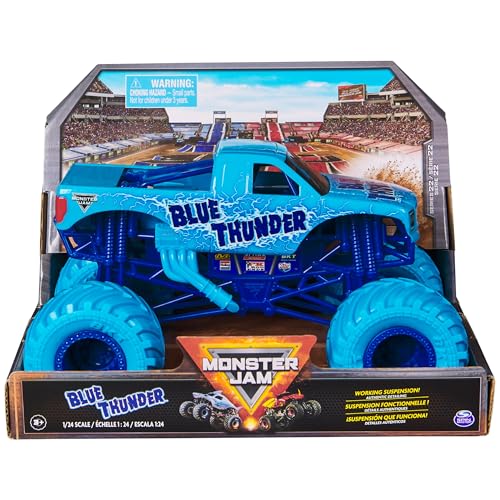 Monster Jam, officiell Blue Thunder Monster Truck, samlare formgjutna fordon, skala 1:24, barnleksaker för pojkar och flickor i åldern 3 och uppåt