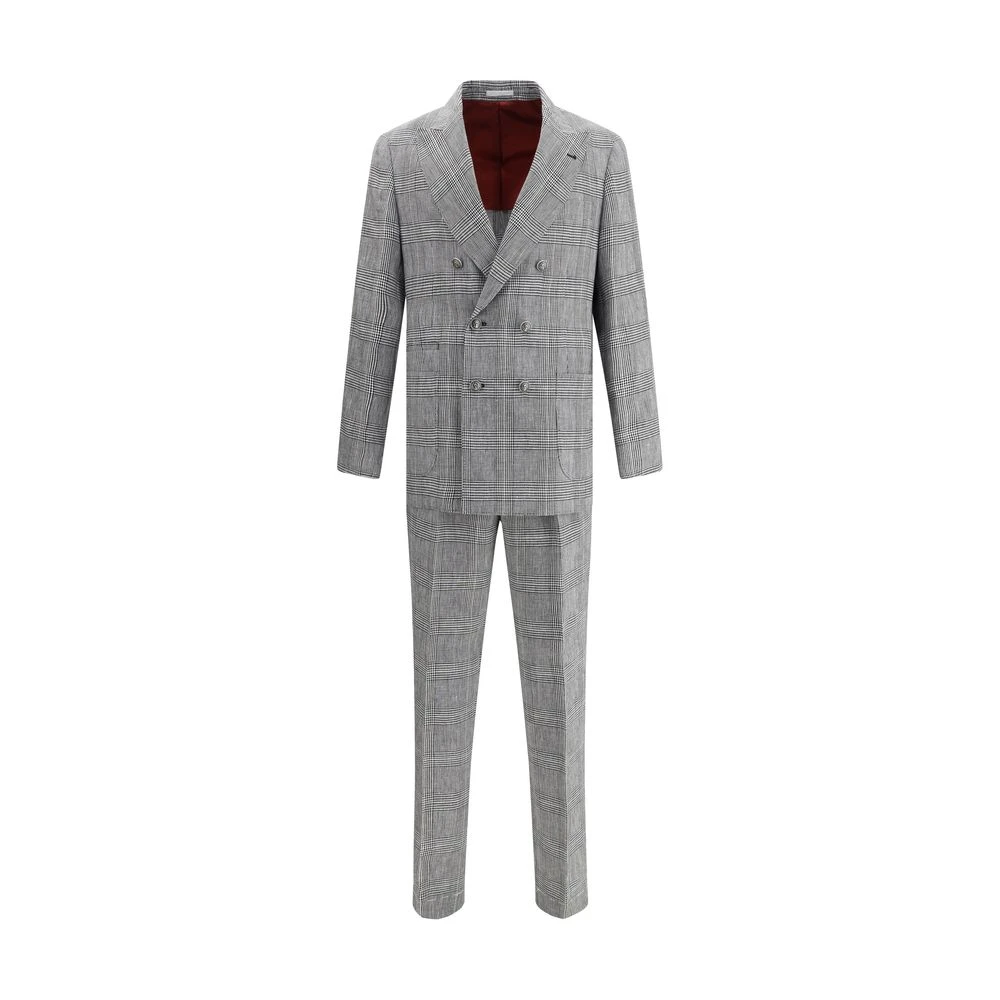 Brunello Cucinelli, Kostymer , Herr, L, Linne, Rutigt Mönster Linne Kostym