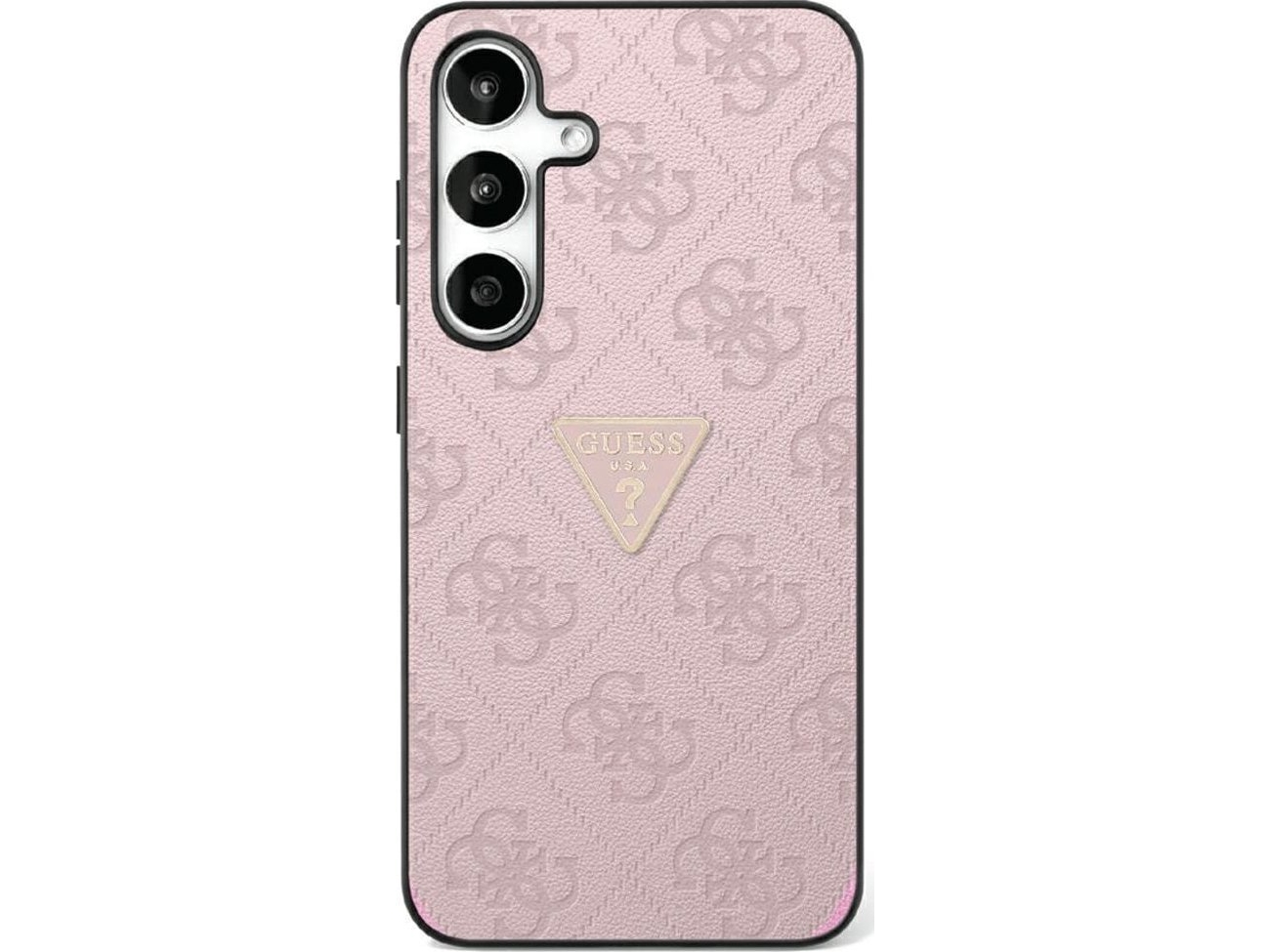 Fodral Guess Hot Stamp 4G Mönster Triangel Metall Logo Samsung Galaxy S25 Rosa