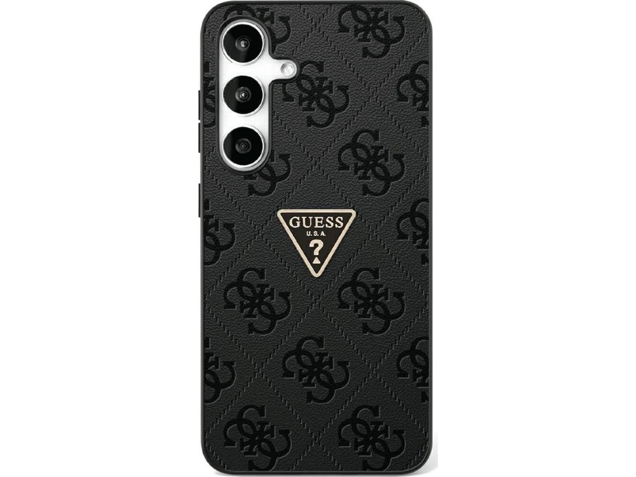 Fodral Guess Hot Stamp 4G Mönster Triangel Metall Logo Samsung Galaxy S25 Svart