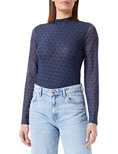 TOM TAILOR Denim Damer Långärmad tröja i mesh med mönster 1033619, 30605 - Navy Logo Print, L