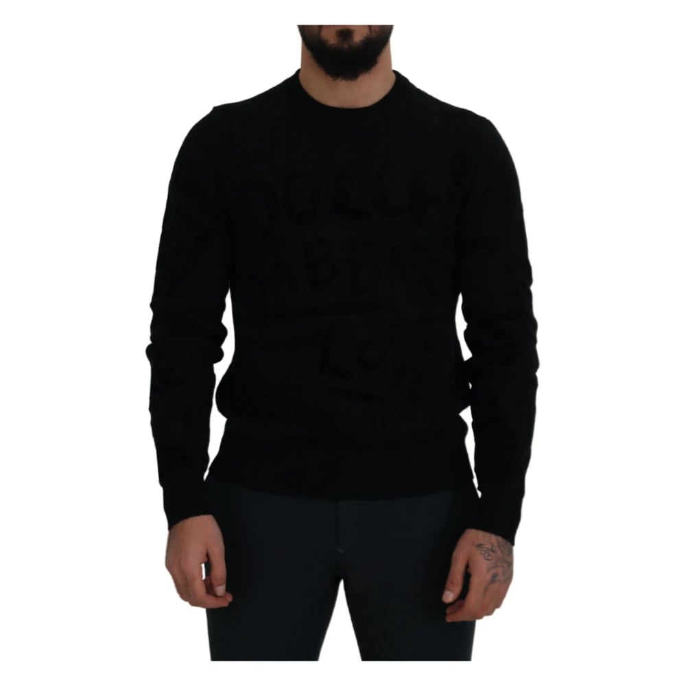 Dolce & Gabbana, Sweatshirts & Hoodies , Herr, M, Svart Ull Logo Mönster Crewneck Tröja
