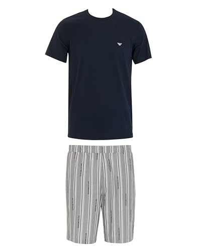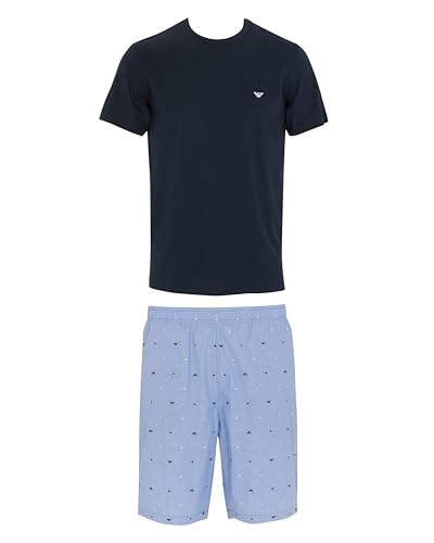 EMPORIO ARMANI MÄNNISKOR LOGO MÖNSTER VÄVT KORT PAJAMAS BLÅ L, BLÅ, L