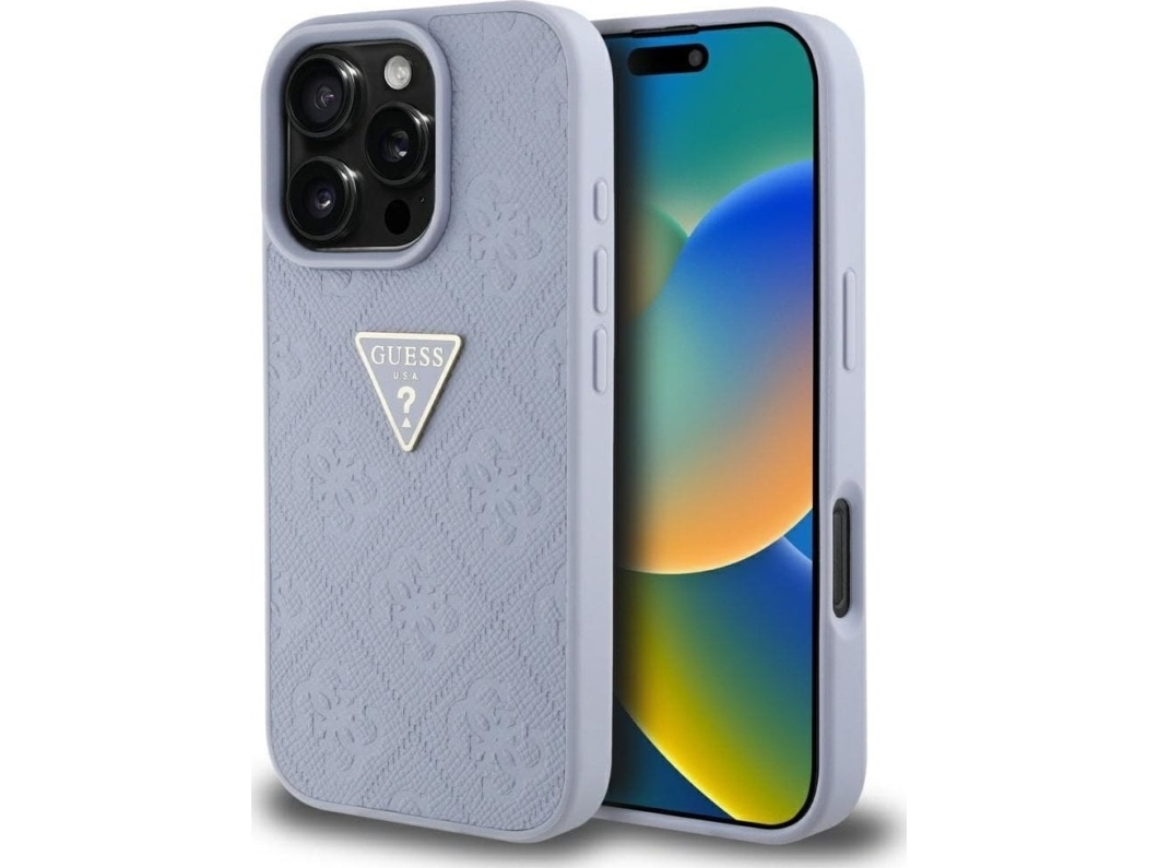 Guess Hot Stamp 4G Mönster Triangel Metall Logo Apple Iphone 16 Pro Max Telefonskal Lila