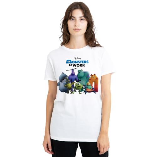 Monsters At Work logo ljus med monster Mike, Sully, Tylor dam t-shirt, vit, medium, Vitt, M