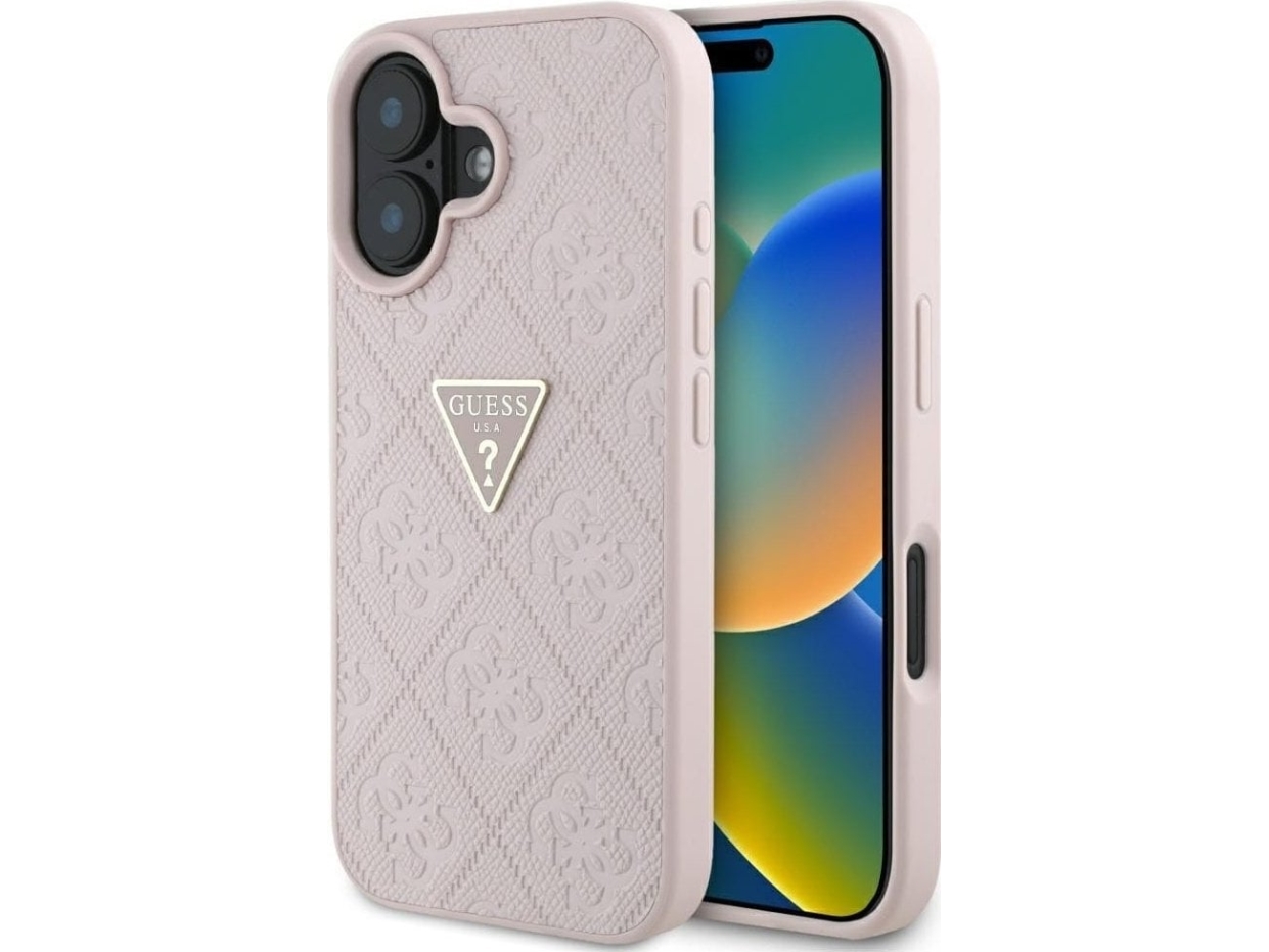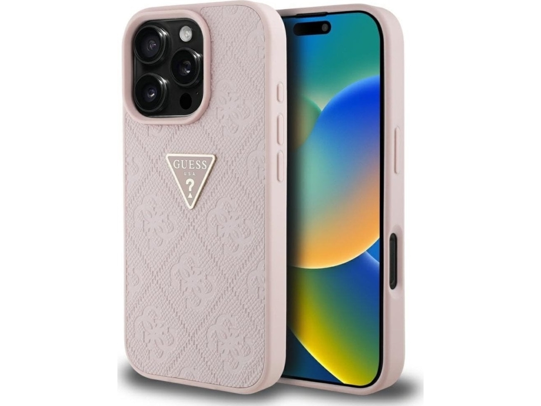 Guess Hot Stamp 4G Mönster Triangel Metall Logo Apple Iphone 16 Telefonskal Rosa