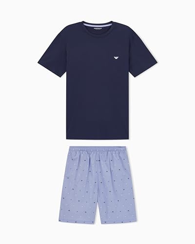 EMPORIO ARMANI MÄNNISKOR LOGO MÖNSTER VÄVT KORT PAJAMAS BLÅ S, BLÅ, S