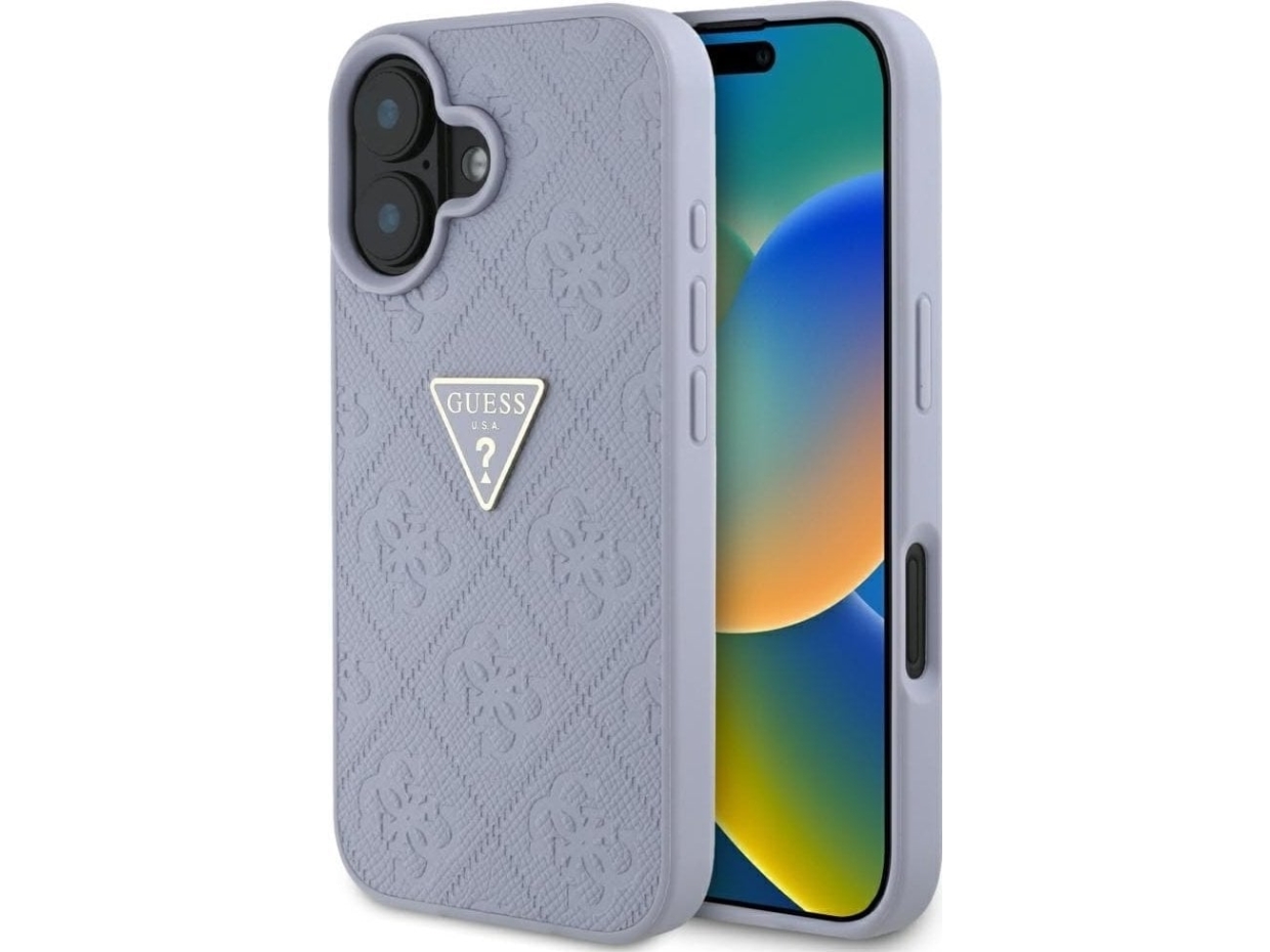 Guess Hot Stamp 4G Mönster Triangel Metall Logo Apple Iphone 16 Telefonskal Lila