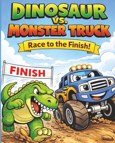 Dinosaur vs. Monster Truck: Race to the Finish!: A Fun Action-Packed Coloring Book for Kids Ages 4–10