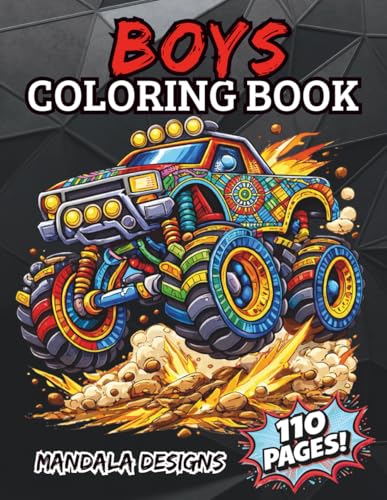 Boys Coloring Book: 110 Mandala-Style Coloring Pages with Monster Trucks, Race Cars, Robots, Dinosaurs, Boats & Ships, and Space Adventures (Ages 6–10)