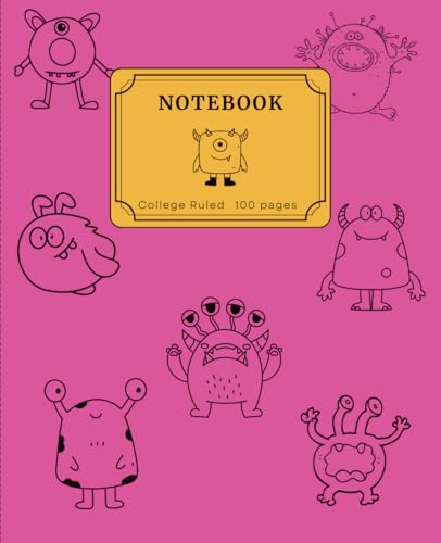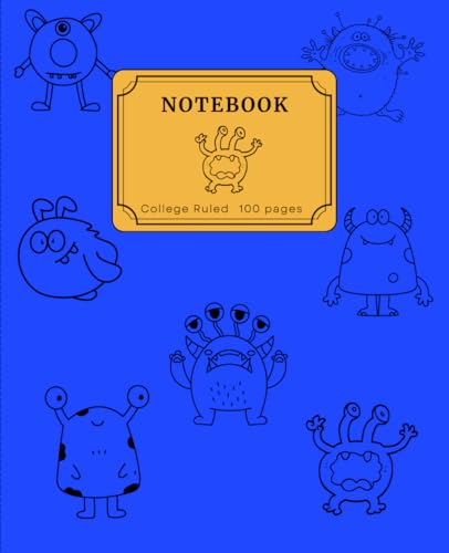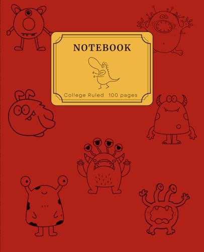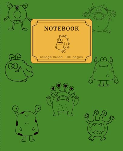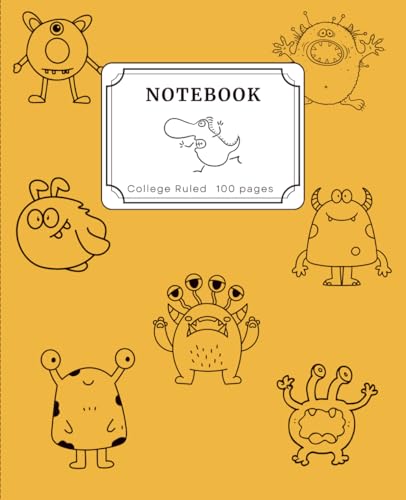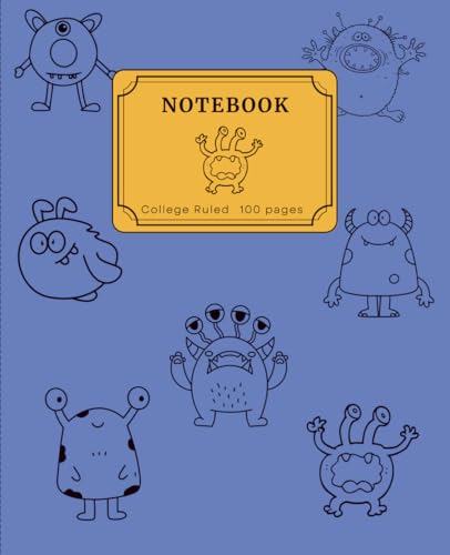 Notebook: Friendly Monster Back to School College Ruled Composition Notebook, Back to School Gift, School Supplies For Boys and Girls, Semi-Transparent Monster Doodles in Notebook, 100 Pages