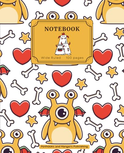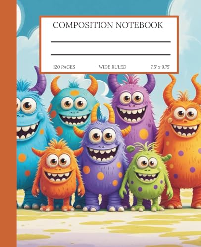 Monster composition Notebook- Wide Ruled with Cute Playful Illustration for School