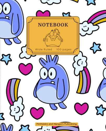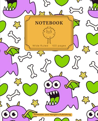 Notebook: Friendly Monster Back to School Wide Ruled Composition Notebook, Back to School Gift, School Supplies For Boys and Girls, Semi-Transparent Monster Doodles in Notebook, 100 Pages