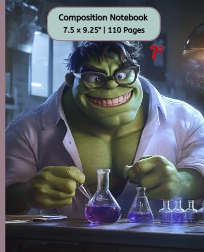 Composition Notebook: Muscular Green Monster Science Superhero themed Journal for Kids | Cool Chemistry Lab Notebook for School | Unleash your Inner Scientist | 7.5 x 9.25" 110 Pages |
