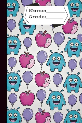 Adorable Blue Monster & Pink Apple Design 6×9 Notebook: Cute Monster & Apple Composition Notebook – Fun & Colorful School Journal for Kids – Wide Ruled, 120 Pages