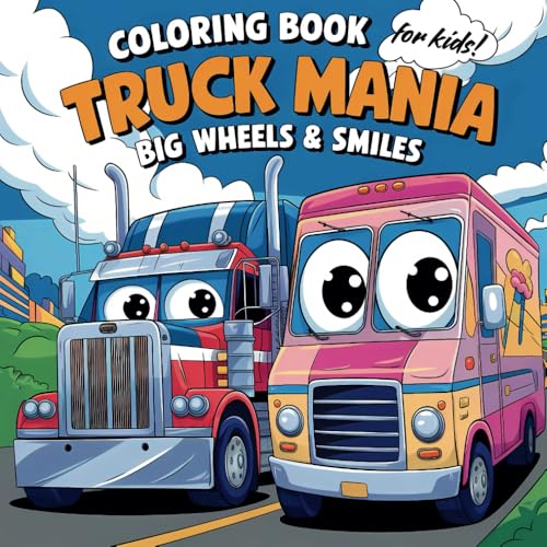 TRUCK MANIA! BIG WHEELS & SMILES - Coloring Book for Kids: A Fun & Easy Coloring Book for Kids Who Love Monster Trucks, Fire Trucks, School Buses & More!
