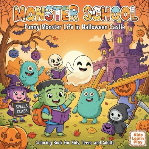 Monster School: Funny Cute Halloween Coloring Book: Funny Monster Life in Halloween Castle Series – Cute and Spooky School Adventures