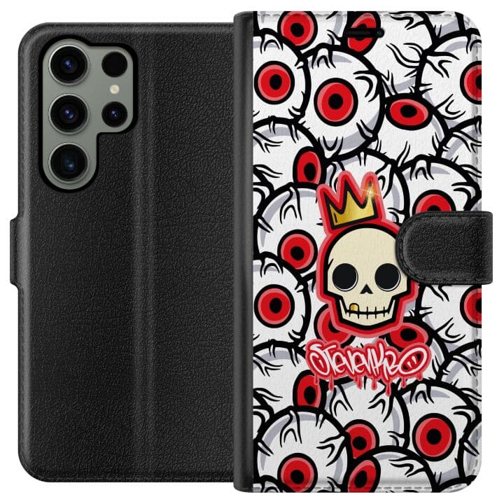 Kompatibelt Plånboksfodral till Samsung Galaxy S24 Ultra Grafiskt mönster med upprepade tecknade ögon i rött, vitt och svart popkonststil