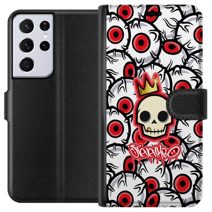 Kompatibelt Plånboksfodral till Samsung Galaxy S21 Ultra 5G Grafiskt mönster med upprepade tecknade ögon i rött, vitt och svart popkonststil