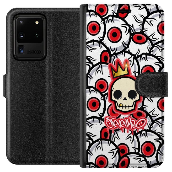 Kompatibelt Plånboksfodral till Samsung Galaxy S20 Ultra Grafiskt mönster med upprepade tecknade ögon i rött, vitt och svart popkonststil