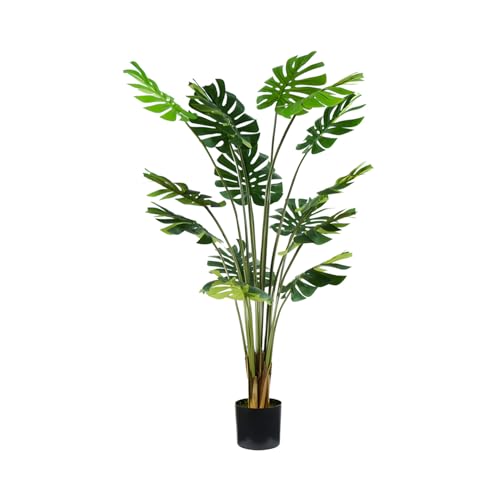 COSTWAY 120 cm konstgjorda växter Monstera Deliciosa, konstträd grönt med 20 blad och plastkruka, konstgjord växt för hem och kontor och restaurang, inredning