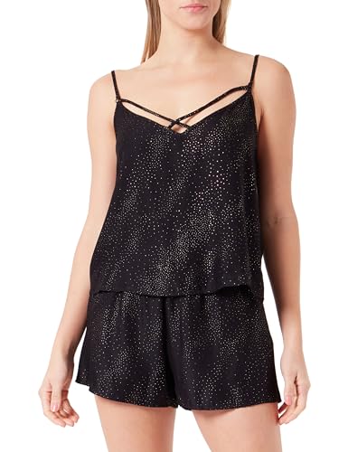 Koton dam mönstrad bindning detalj spaghetti strappy pyjamas topp skjorta, Svart (999), 38