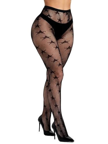 Buitifo kvinnor sexiga strumpbyxor mönstrade fisknätsstrumpor lår höga tights leggings, Svart Xx, one size