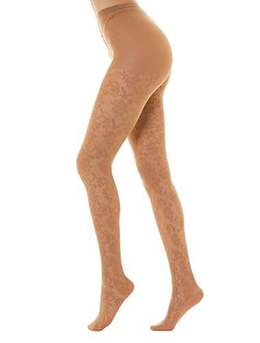Gi&Gi Blommiga mönstrade strumpbyxor, dam blommig ton-i-ton spets tights. 40 Denier N.1464, Svart, L-XL