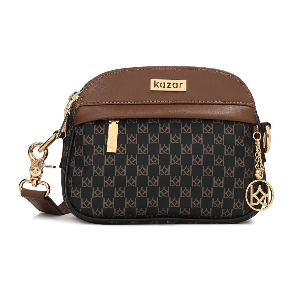 Kazar, Väskor , Dam, ONE Size, Läder, Brun stadsväska gjord av mönstrat tyg