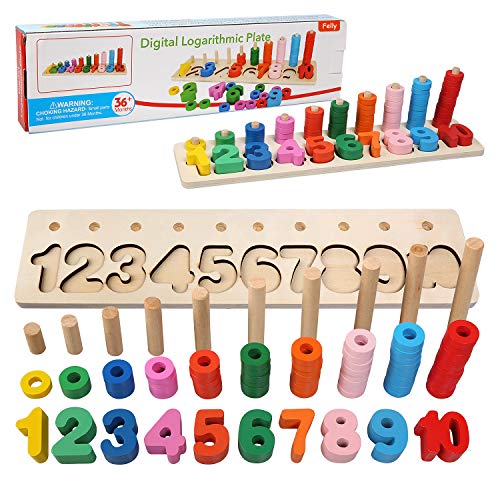 Felly Pedagogisk leksak från 3 4 5 år, Montessori-leksak från siffror, lärande träleksak, pusselspel | pussel av trä – motorik för tidigt lärande på dagis för småbarn