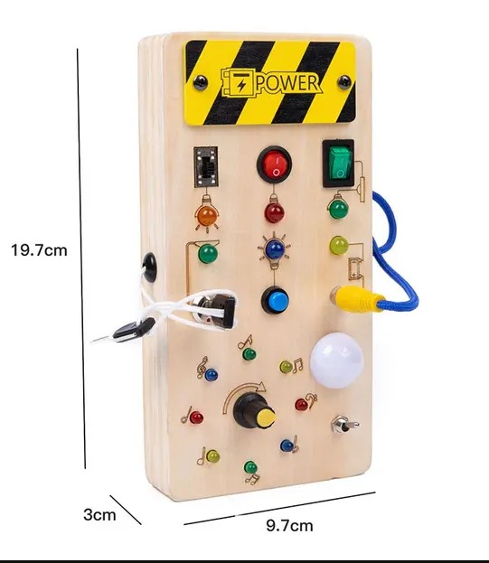 Montessori leksak, kretskort-L, Barnet lär sig grunderna med el och knappar med feedback