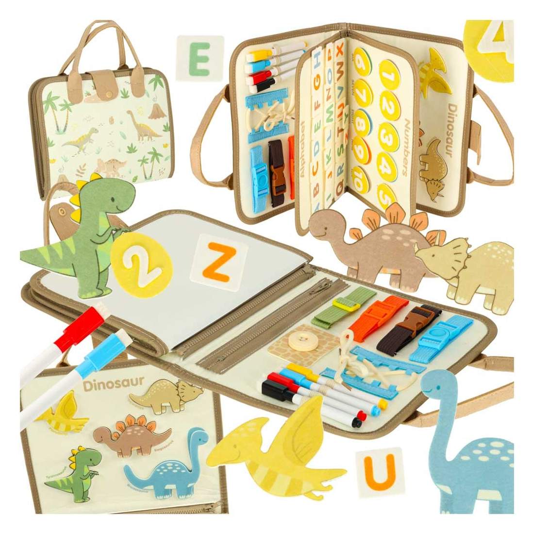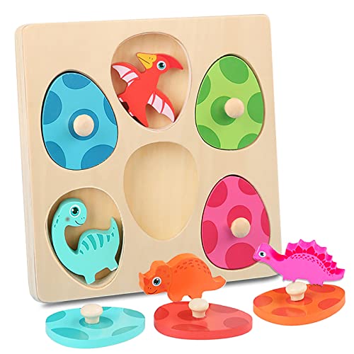 Dinosaurier leksaker trä pussel med knapp, Goorder Montessori leksak för barn 1 2 och 3 år, interaktivt pussel pedagogiskt spel, baby lärande spel för pojke, flicka födelsedag julklapp
