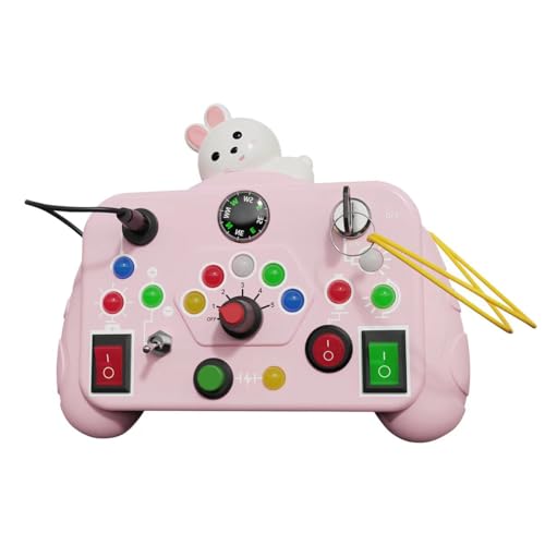 NIWWIN Busy Board Montessori med strömbrytare LED-upplyst spel Montessori-spel leksak barn 1 2 3 år gammal gåva barn pedagogiska spel resor leksaker för barn (rosa)