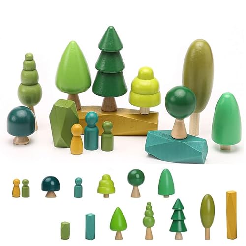 OESSUF 14 st träleksaker – träträddekoration Montessori-leksaker, olika storlekar, träd, skog, rustik, dekoration för heminredning och barnrum