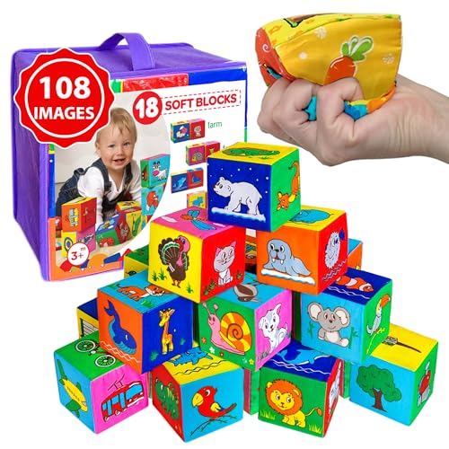magdum 18 speltärningar baby – byggstenar för barn från 1 år – Montessori-leksaker från 1 år – stapelbara stenar – byggklossar – staplingskoppar baby – sensoriska stapelkuber – motorikkuber från 1 år