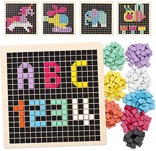Coogam 370 st trämönster pussel, formade mosaikblock med 8 färger, Pixel brädspel STEM Montessori leksaker present till baby barn pojkar flickor i åldrarna 4-5, 6 7 år
