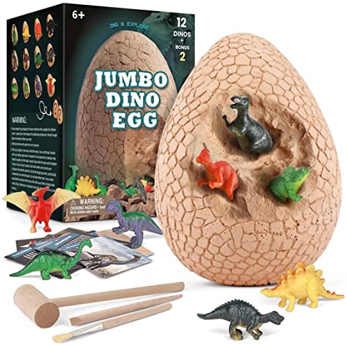 Jokooan Stort Dinosaurie ägg, Dinosaurie Utgrävningssats, Påskägg Leksak för Barn, Innehåller 14 Dinosaurier Fossil Arkeologisk Vetenskap STEM Montessori Leksaker för Barn från 6 år