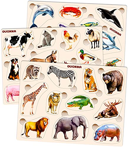 BelleStyle Träpussel, Montessori-leksaker barn 2 3 4 5 år gammal, pedagogiska spel, djur pussel infällda pussel spel lärande för barn småbarn pojkar flickor 2–5 år, 6 x 9 bitar