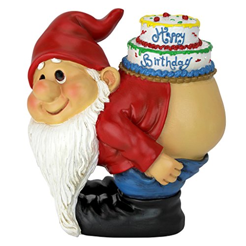 Design Toscano Loonie Moonie födelsedagsdekorationer – trädgårdsgnome-staty – Loonie Happy Birthday Gnome staty – stygga tomtar – månande tomtar statyer, flera färger, 14 x 18 x 19 cm