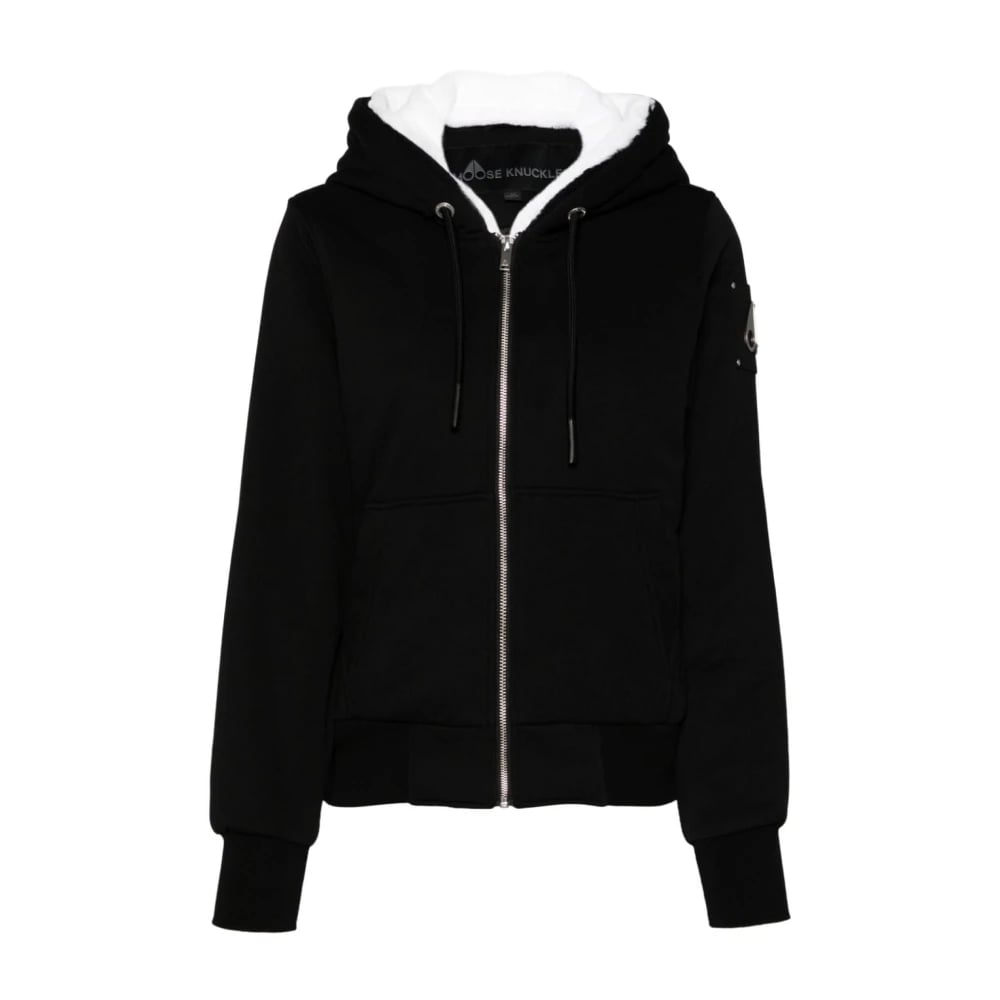 Moose Knuckles, Sweatshirts & Hoodies , Dam, M, Bomull, Svart Bomullsjacka med Fuskpälskant