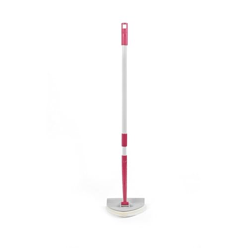 Kleeneze KL076533EU7 dubbelsidig badrumsrengörare – mångsidig platt mopp med teleskophandtag, hård golvrengöring med spetsigt huvud, perfekt för duschar, speglar och kakel, svamp och skrapa sidor