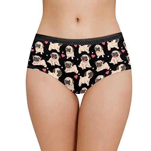Xoenoiee Dam bomull polyester underkläder full täckning svart spets midja stretch trosor mjuka bekväma damtrosor, Mops hund hjärta, S