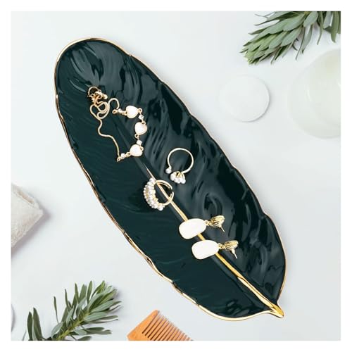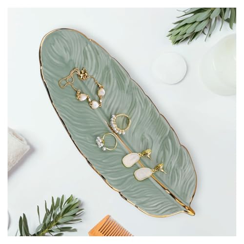 YoHyien Keramisk Smyckesfat, Fjäderformad Smyckeskål, Dekorativ Ringfat, Prydnadsfat för Halsband, Armband, Örhängen, Smyckesfatgåvor för Kvinnor, Nana, Mor, Dotter (Grön)