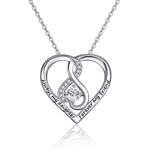 Mor dotter halsband sterlingsilver kärlek hjärta hänge 'Always My Daughter Forever My Friend', mors dag smycken födelsedagspresent