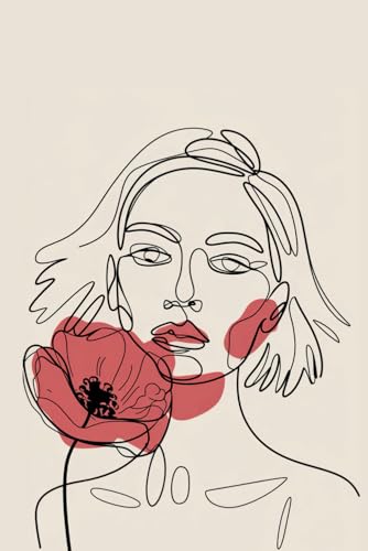 Quaderno A5 a Righe con Copertina Morbida Opaca - 108 Pagine, Design Line Art Poppy, Notebook per Appunti e Scrittura Creativa