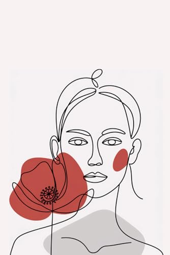 Quaderno A5 a Righe - 108 Pagine, Copertina Morbida Opaca, Design Line Art Poppy, Ideale per Scuola, Ufficio e Scrittura Creativa
