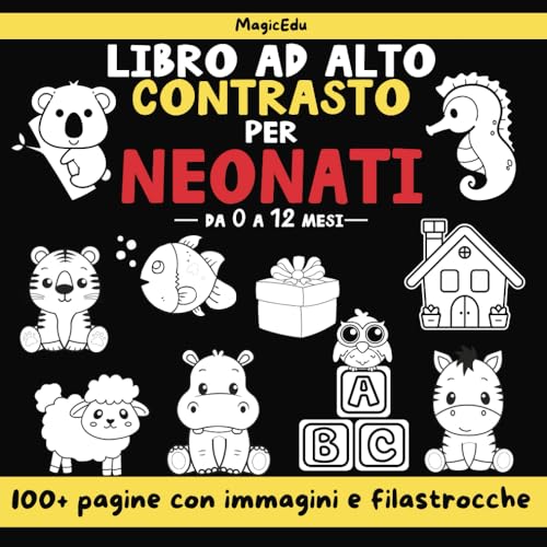 Libro ad Alto Contrasto per Neonati: Stimola il Senso Visivo e Cognitivo con 52 Illustrazioni e Filastrocche | Copertina Morbida e Sicura per il Tuo Bambino | Ideale da 0 a 12 Mesi