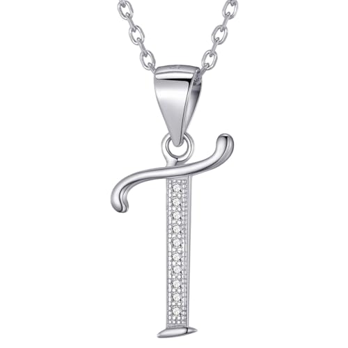 Morella damhalsband silver med bokstaven T hänge 925 silver rodierad med zirkonia-stenar vit 45 cm