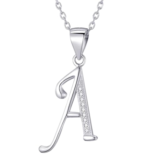 Morella damhalsband silver med bokstaven A hänge 925 silver rodierad med zirkonia-stenar vit 45 cm