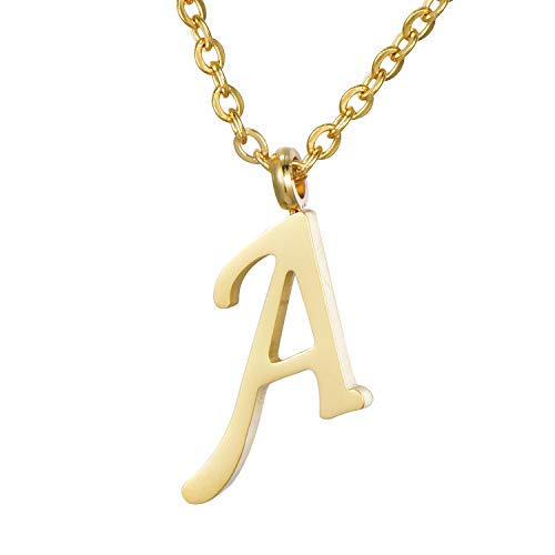 Morella damhalsband med bokstaven A hänge rostfritt stål guld i smyckespåse